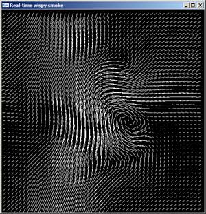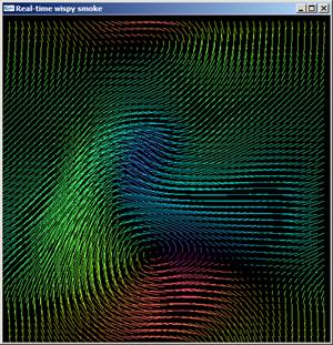 The final application, Smoke.exe, is created in the top-level directory. To run it, you must have the GLUT library glut32.dll in the same location as the executable. This library is provided with the code.